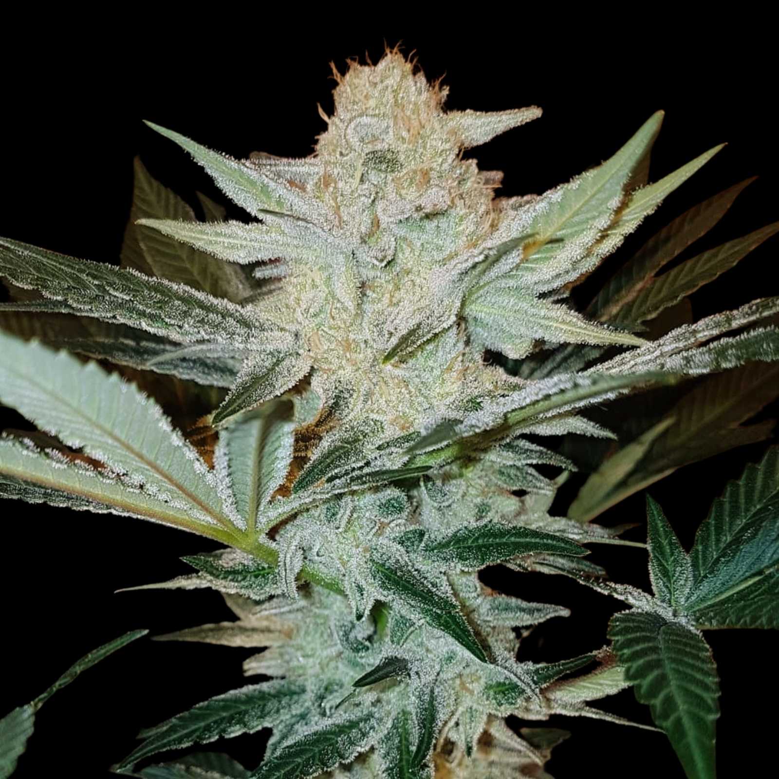 Sus flores crecen densas, pesadas y cargadas de resina. Cada cogollo parece cubierto de azúcar. No solo es visual, es táctil. Pegajoso. Aromático. Perfecto para quienes buscan calidad real en semillas de cannabis y un rendimiento que se nota al final del ciclo.