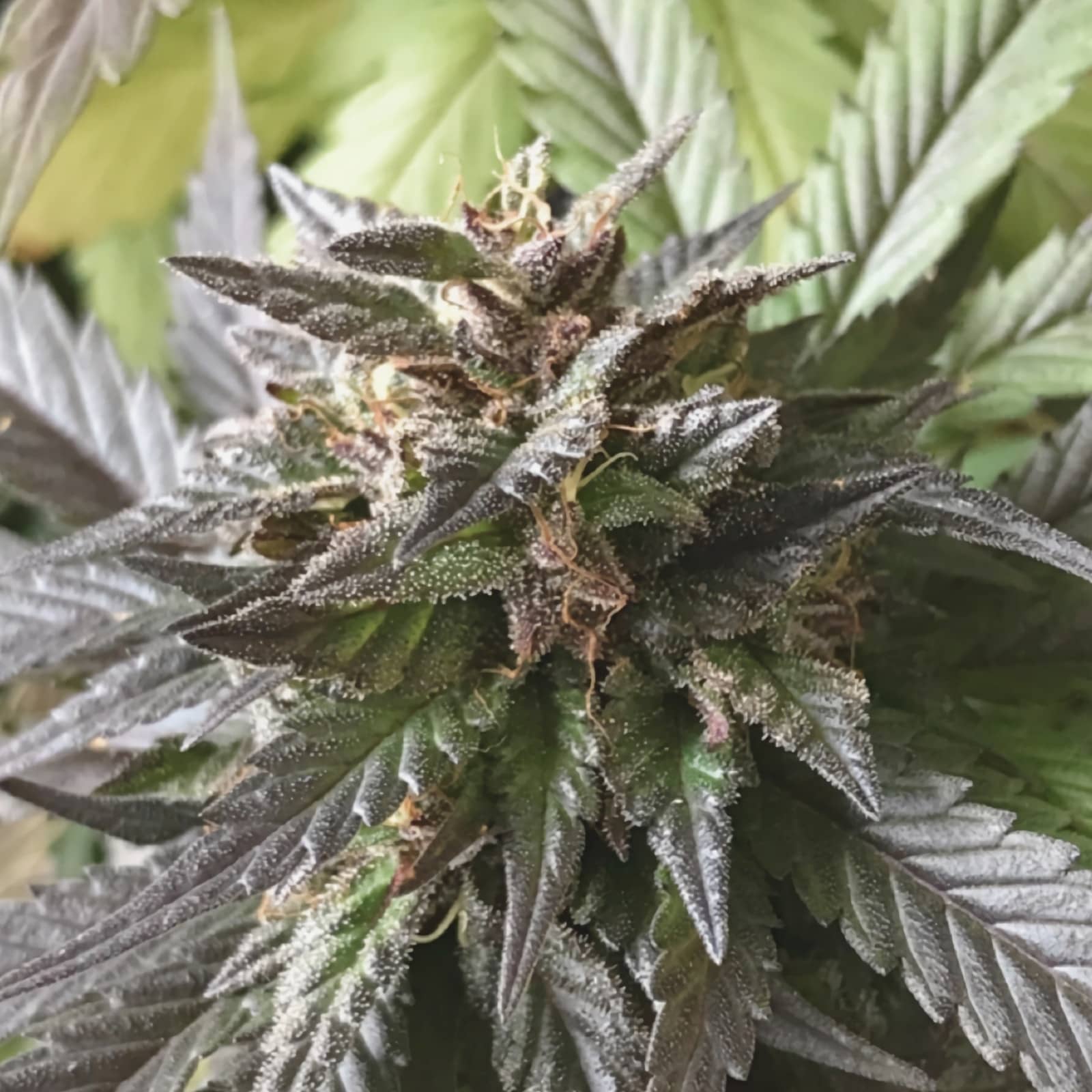La morfología de la Blue Cheese es impresionante. Sus plantas son robustas, compactas y manejables. Los cogollos son densos y resinosos, con una apariencia espectacular que recuerda a las noches estrelladas gracias a su brillante recubrimiento de tricomas cristalinos. Los colores varían del verde oscuro al púrpura, creando un espectáculo visual que es simplemente irresistible.