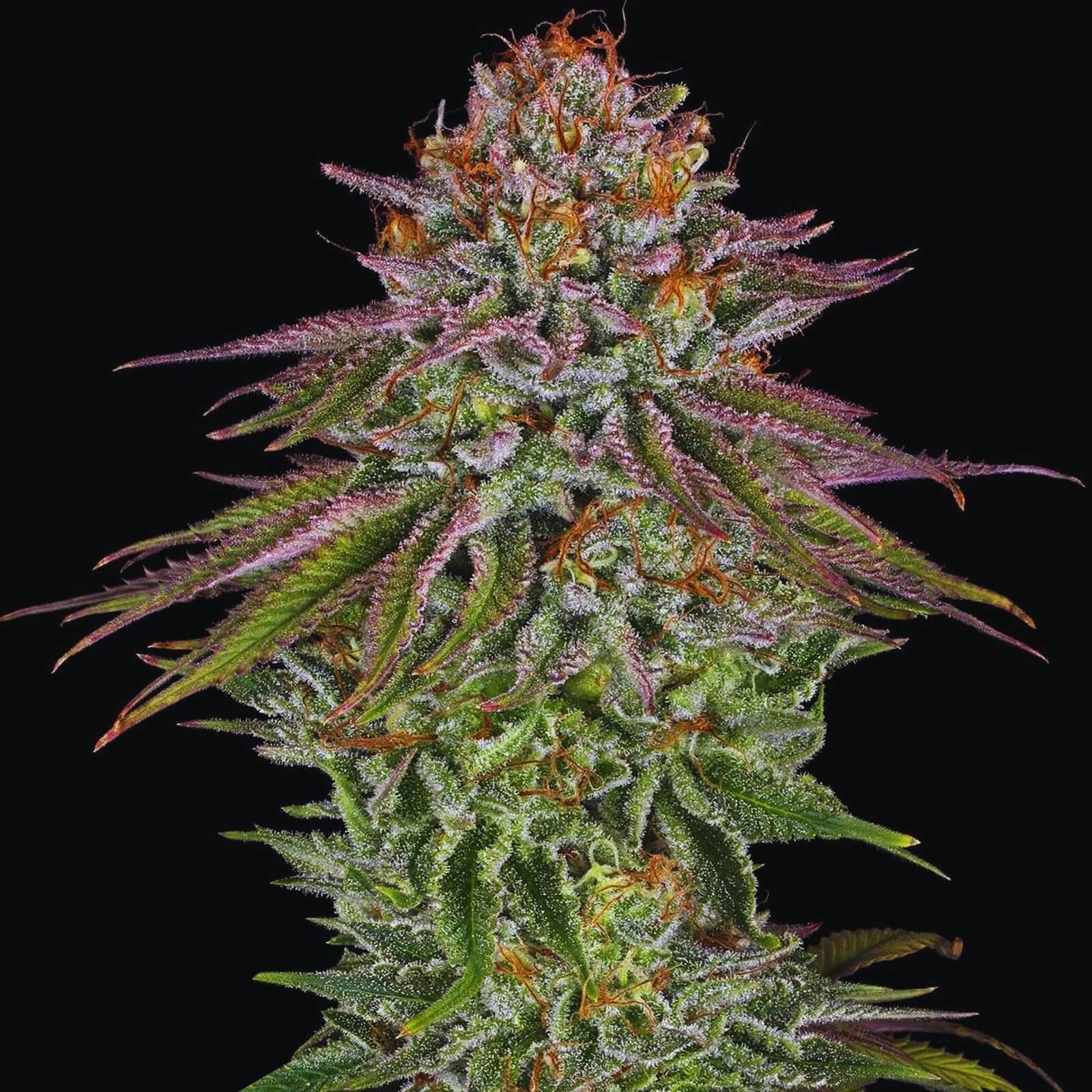 Visualmente, la planta de Critical Kush es un espectáculo. Tiene una estructura típica de árbol de Navidad, con ramas fuertes y bien distribuidas. Sus cogollos son grandes, densos y resinosos, adornados con pistilos naranjas vibrantes y una capa de tricomas brillantes que parecen una fina capa de nieve cristalina. El color de los cogollos varía de un verde menta claro a un verde más oscuro, con tonos púrpura que resaltan bajo la luz adecuada.