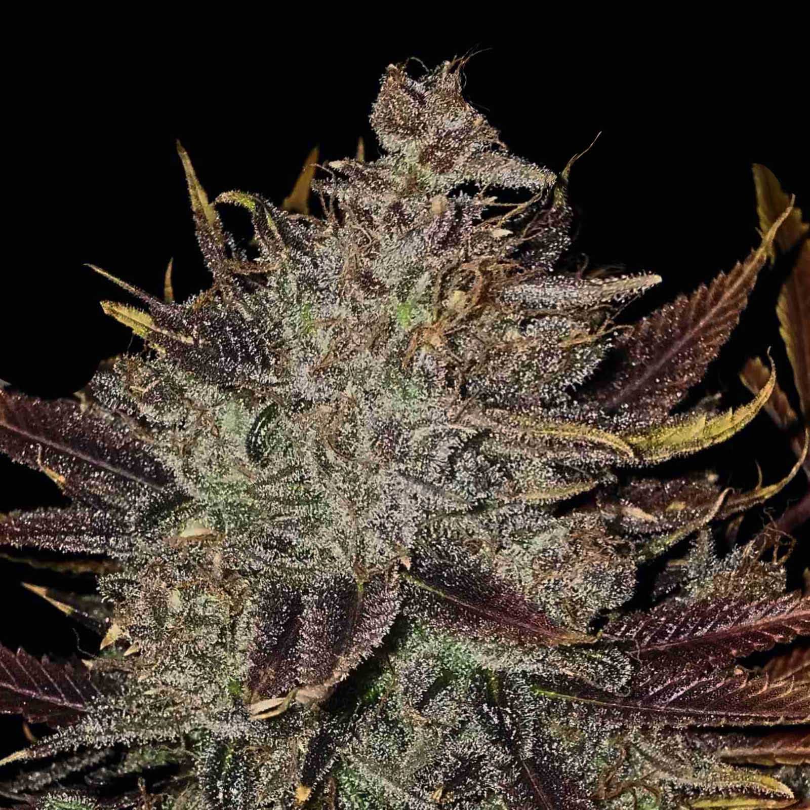 La planta se caracteriza por sus grandes hojas de un verde profundo, a veces con tonos púrpuras que destacan en temperaturas más frías. Sus cogollos son grandes y densos, formando colas largas y compactas que se recubren de una capa de tricomas resinosos, dándoles un brillo casi cristalino. Además, los pistilos anaranjados que adornan las flores contrastan maravillosamente con el verde y el púrpura de las hojas, haciendo de cada planta un auténtico espectáculo.